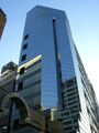 ●一ツ木通りの入り口にある9階建ての全面ガラス張りのビルになります。