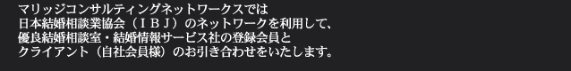 また結婚情報サービス社(パートナーエージェント・ブライダルネット他)の加盟もあり、旧来の結婚相談室同士の繋がりのみならず新たなネットワークで様々な会員層との出会いのチャンスを広げることが可能です。