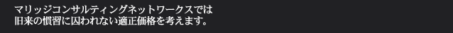 加盟結婚相談所や会員構成が同じような結婚相談業連盟に重複加盟をしない、ステータスシンボル的な豪華なサロンスペースを持たない等の無駄なコストを削減することでクライアントに本当に必要なサービスを適正な価格でご提供ができると考えます。
