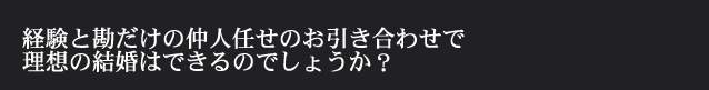 ベテランの仲人は経験則からお見合い成立数を高めるために、希望条件に該当しない会員も薦める傾向がありますが、それはクライアントの希望を完全に理解した上での本当のコンサルテーションとはいえないのではないでしょうか?