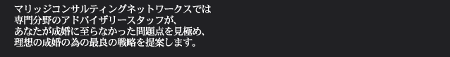 実はこのような基本的なことですらアドバイスを行っていない結婚相談室が多かったのも事実です。